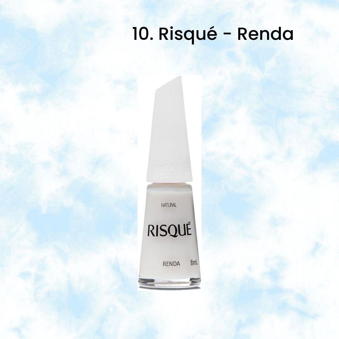 Agora vamos às marcas brasileiras que não saem das mãos do povo! E obviamente a Risqué estaria nessa lista de esmaltes claros mais usados com o seu clássico Renda.